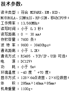 数据传送方式 | 网络传输、射频卡传输(可选) |