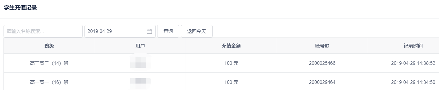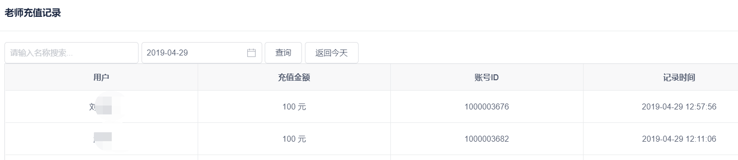 这个模块分别记录了学生和老师线上充值的交易明细,可查询到线上充值时间和充值金额。